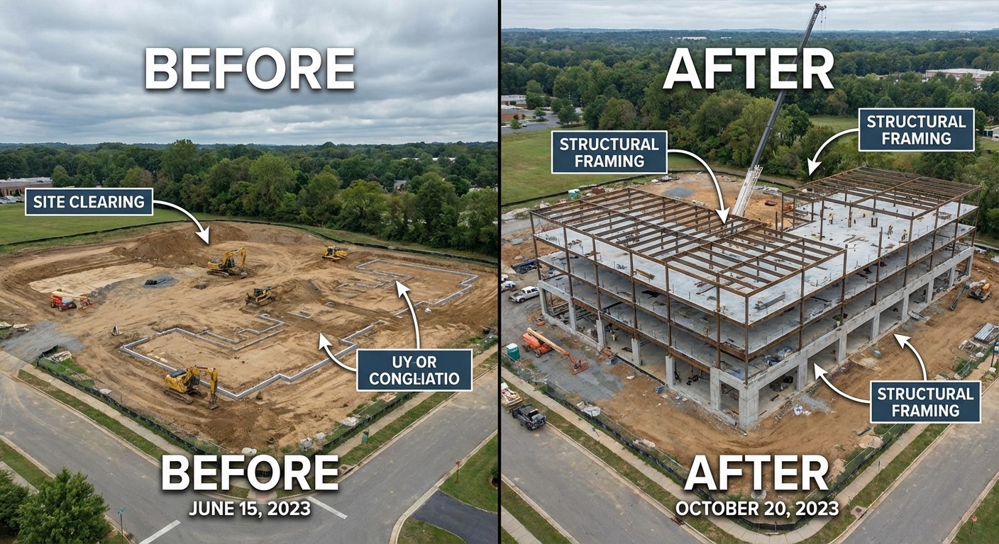 Regular aerial surveys provide clear visual documentation of construction milestones, helping keep projects on schedule and budget.