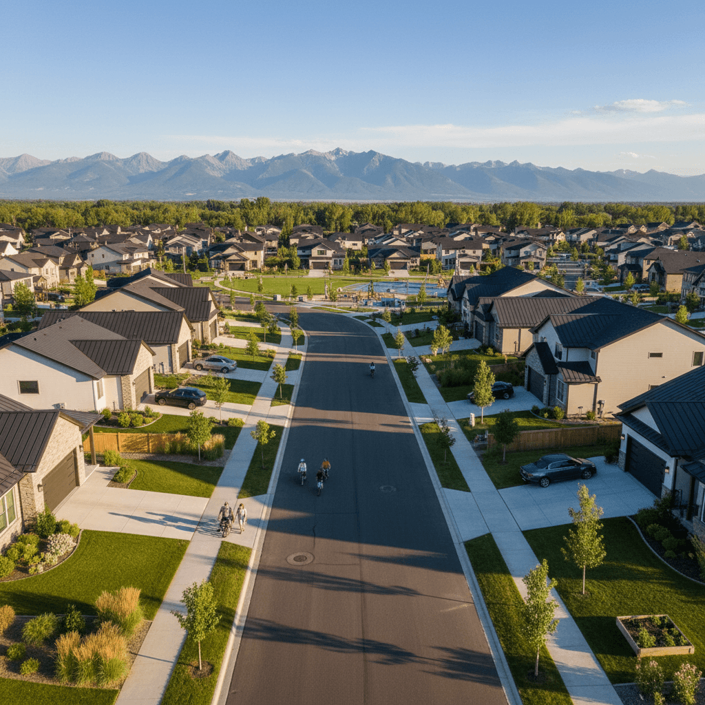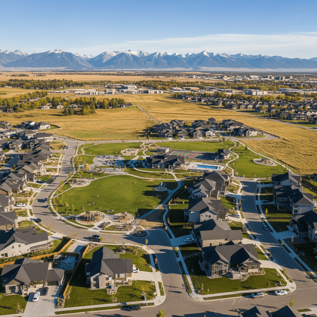 Showcase properties and lifestyle in Falcon Hollow Bozeman with professional aerial videography. Our drone services capture the contemporary subdivision, open spaces, and family-friendly atmosphere that defines this unique Bozeman neighborhood. Perfect for real estate listings, community marketing, and showcasing the specific character of Modern Subdivision living in Gallatin County.