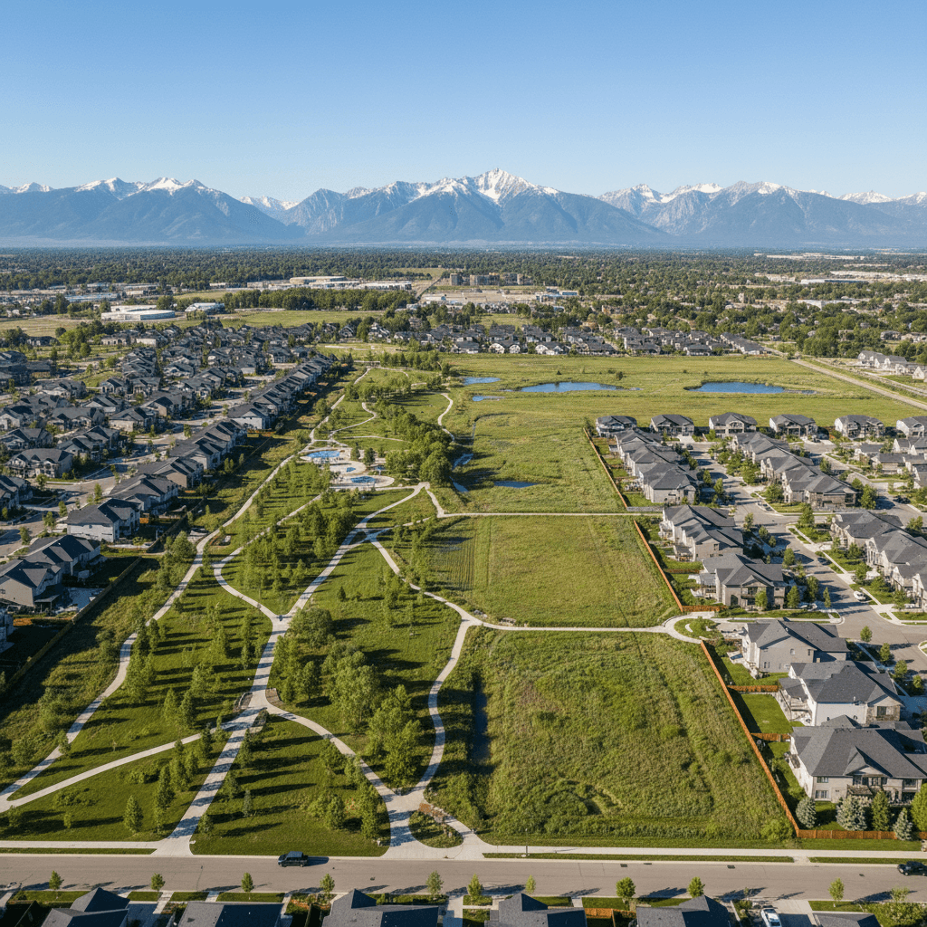 Showcase properties and lifestyle in Middle Creek Parklands Bozeman with professional aerial videography. Our drone services capture the linear parks, open space blocks, and community connectivity that defines this unique Bozeman neighborhood. Perfect for real estate listings, community marketing, and showcasing the specific character of Park Subdivision living in Gallatin County.