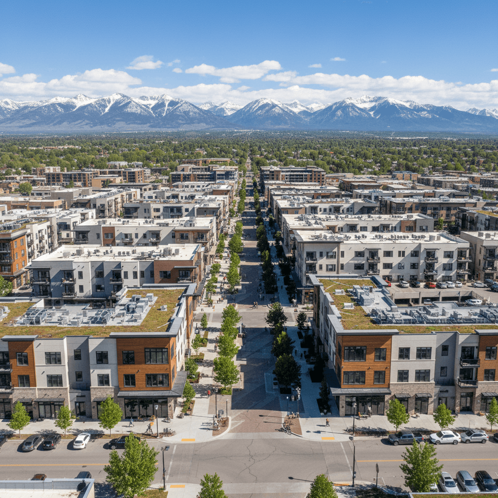 Showcase properties and lifestyle in Midtown Bozeman with professional aerial videography. Our drone services capture the new urban development, mixed-use buildings, and central corridor connectivity that defines this unique Bozeman neighborhood. Perfect for real estate listings, community marketing, and showcasing the specific character of Developing Urban living in Gallatin County.