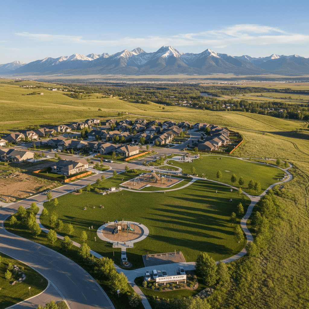 Showcase properties and lifestyle in Norton Ranch Bozeman with professional aerial videography. Our drone services capture the affordable family living, parks, and mountain views that defines this unique Bozeman neighborhood. Perfect for real estate listings, community marketing, and showcasing the specific character of Family Residential living in Gallatin County.