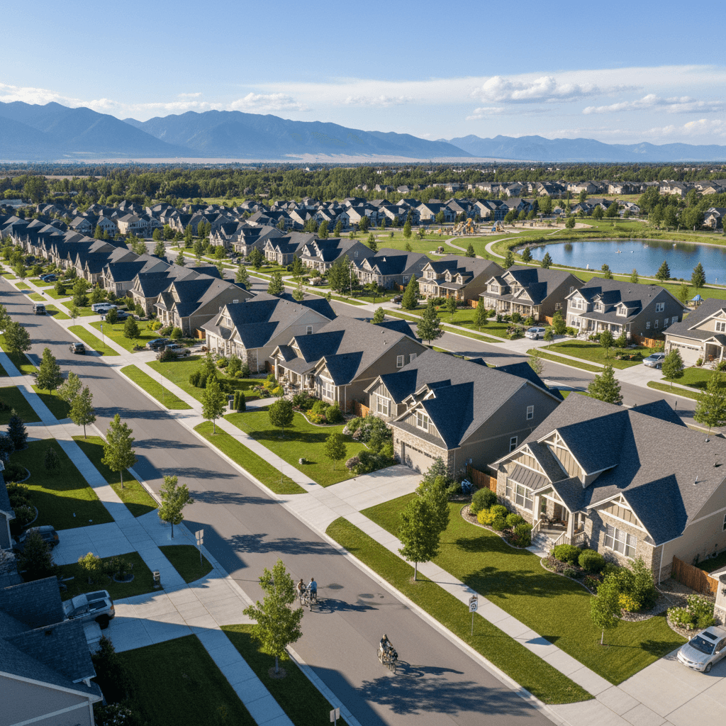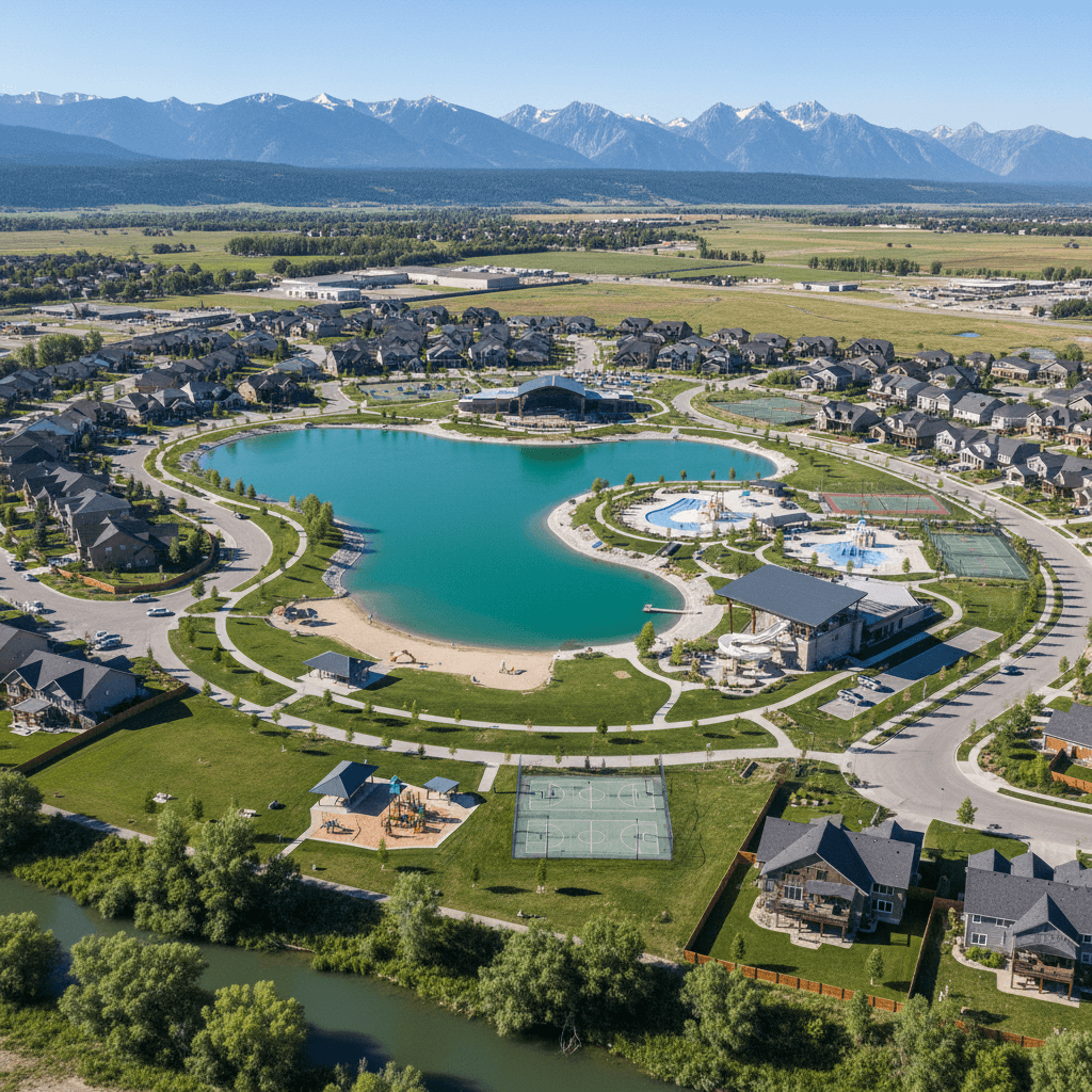 Showcase properties and lifestyle in River Rock Belgrade with professional aerial videography. Our drone services capture the community lake, event center, and family-friendly amenities that defines this unique Belgrade neighborhood. Perfect for real estate listings, community marketing, and showcasing the specific character of Master Planned living in Gallatin County.
