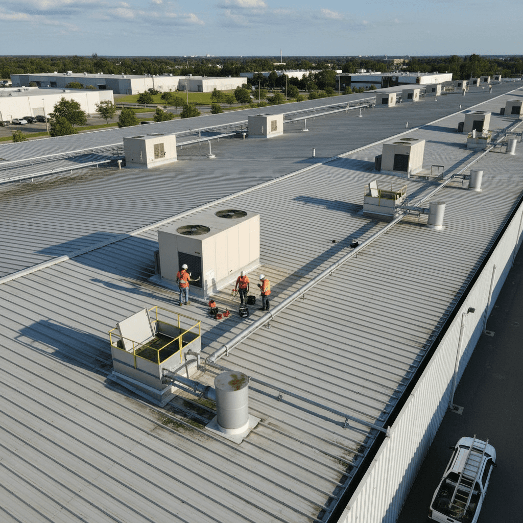 Aerial footage provides detailed views of roof conditions, parking lots, and loading areas without disrupting operations.