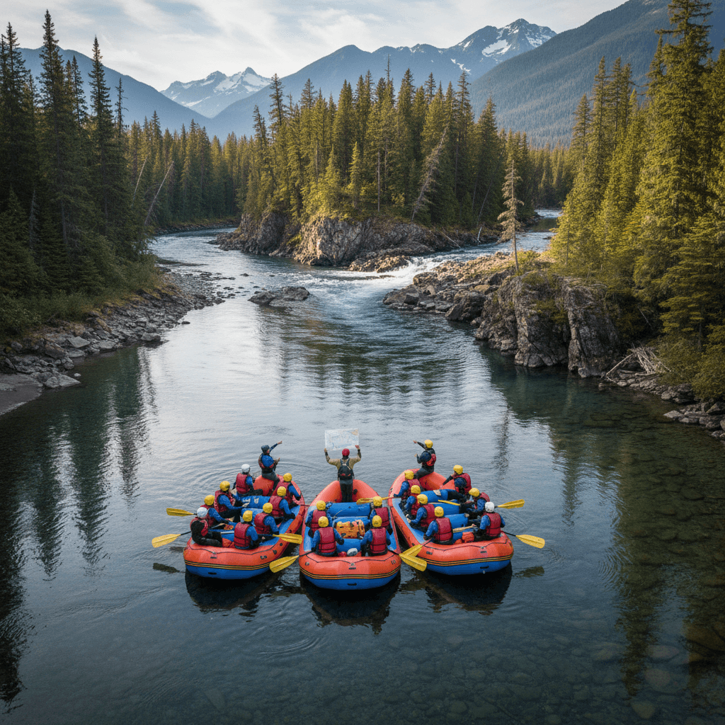 Aerial footage captures the excitement of rafters tackling rapids, creating compelling content that drives bookings.